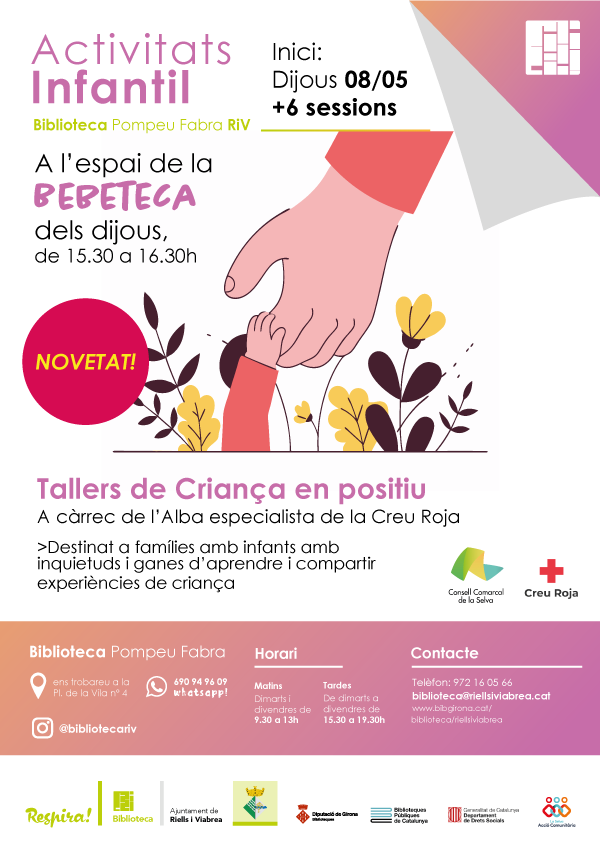 Taller de criança en positiu. A càrrec de l'Alba especialista de la Creu Roja. Destinat a famílies amb infants amb inquietuds i ganes d'aprendre i compartir experiències de criança.