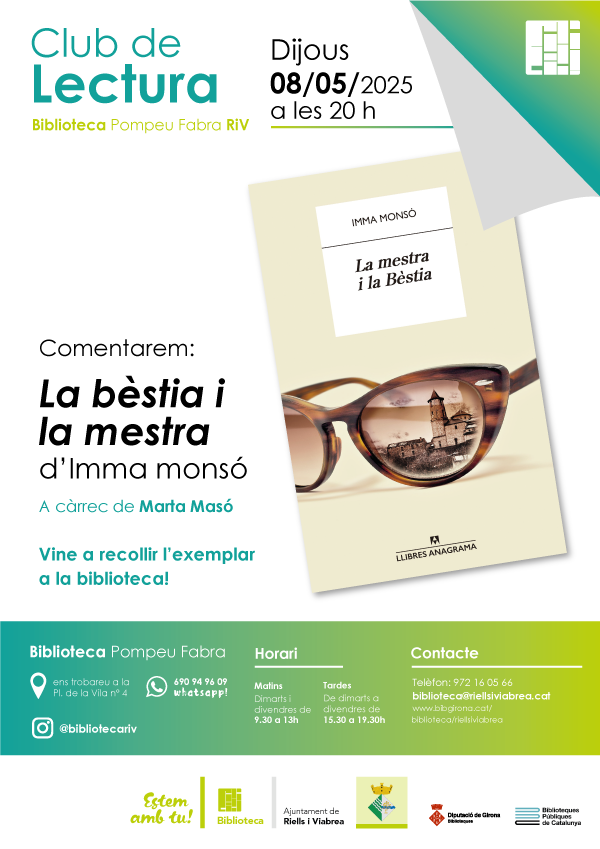 Comentarem "La bèstia i la mestra" d'Imma Monsó. A càrrec de Marta Masó.