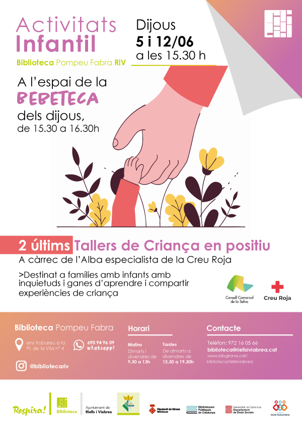 2 últims tallers de Criança en positiu. A càrrec de l'Alba, especialista de la Creu Roja. Destinat a famílies amb infants amb inquietuds i ganes d'aprendre i compartir experiències de criança.