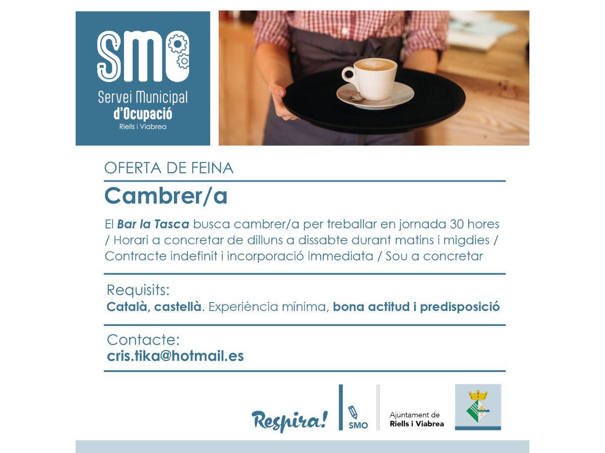 Nova oferta de feina de cambrer/a